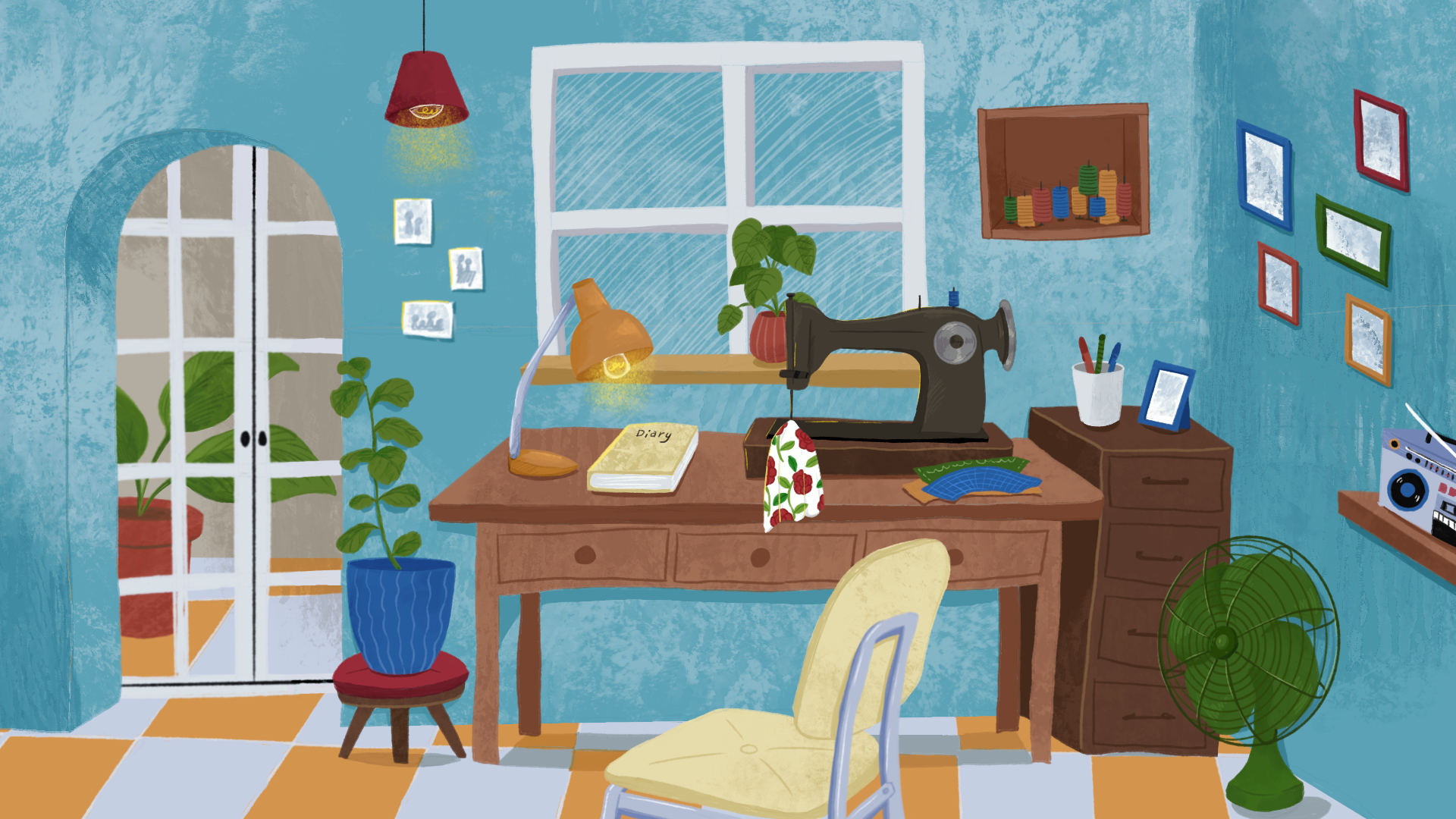 - Hand-drawn interface and visuals